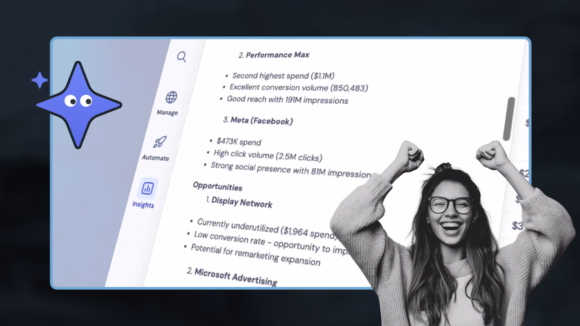 See how to simplify multichannel ad reporting tasks with automation. Proactively spot trends and optimize campaigns with real-time data and AI insights.