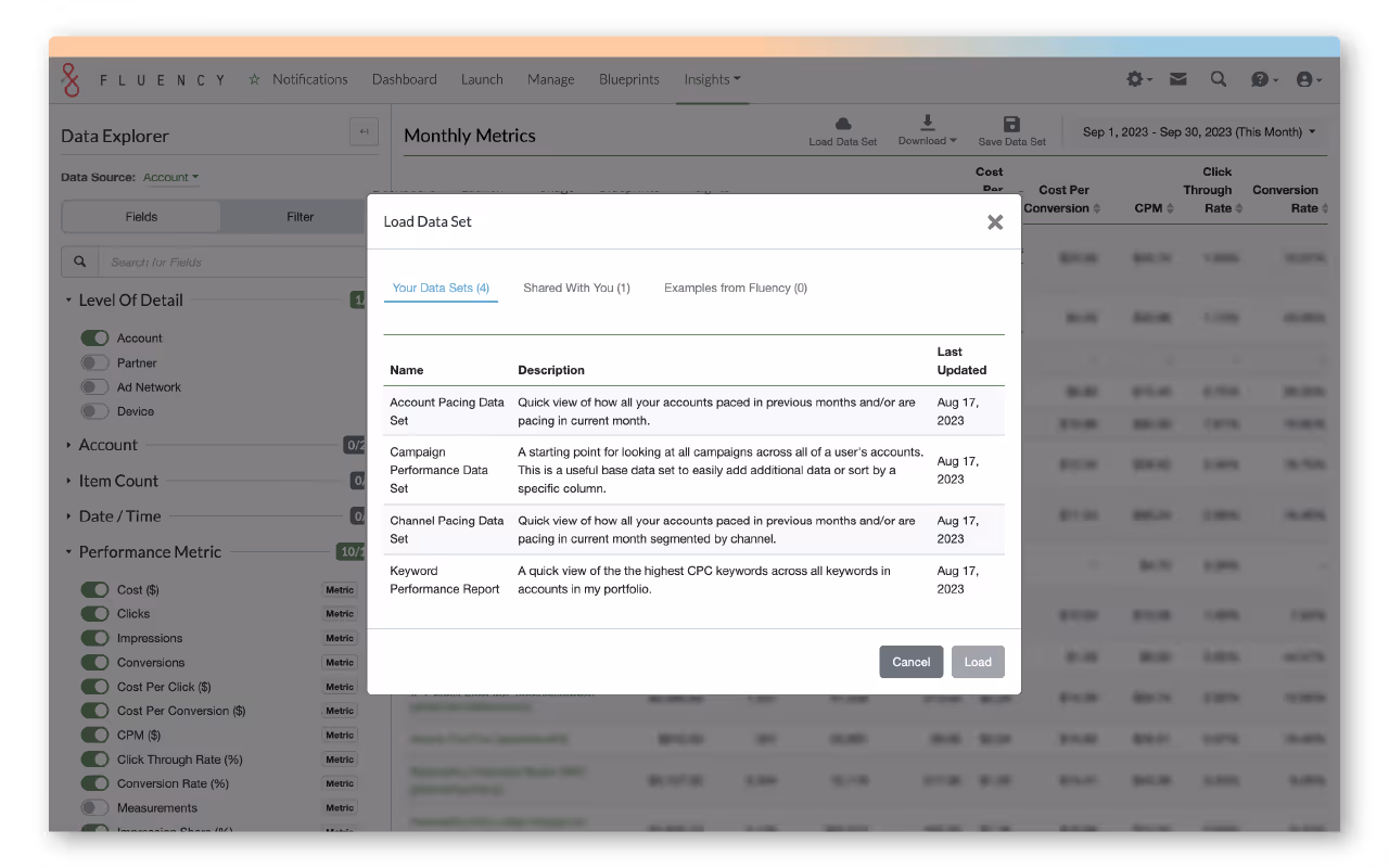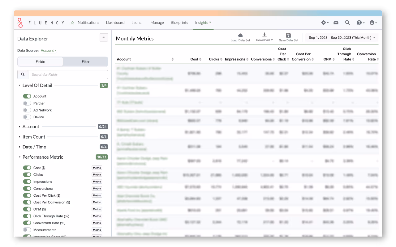 Data Explorer is designed with one goal in mind: to empower Fluency users with the ability to effortlessly generate customizable, paginated reports. Whether you're a customer-facing team member seeking to provide real-time insights to clients or a data enthusiast looking for a simplified view of your digital advertising performance, Data Explorer is your new go-to tool.