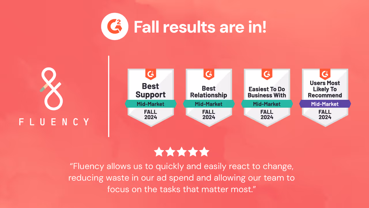 Fluency Ranked #1 Enterprise Advertising Solution for Service, Usability, and Results in G2’s Spring 2025 Reports